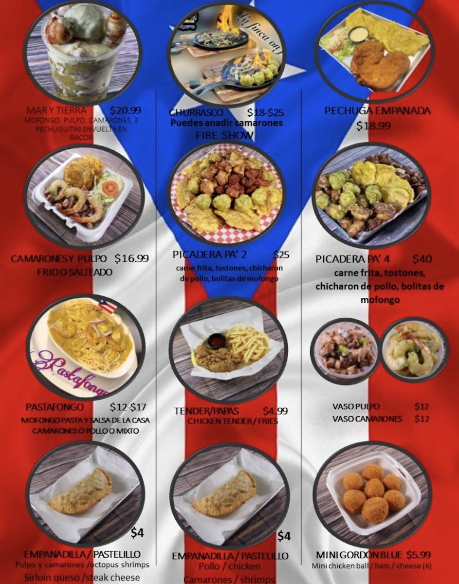 *Churrasco\n*Camarones\n*Bolitas de mofongo
